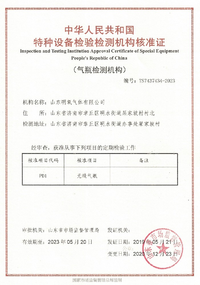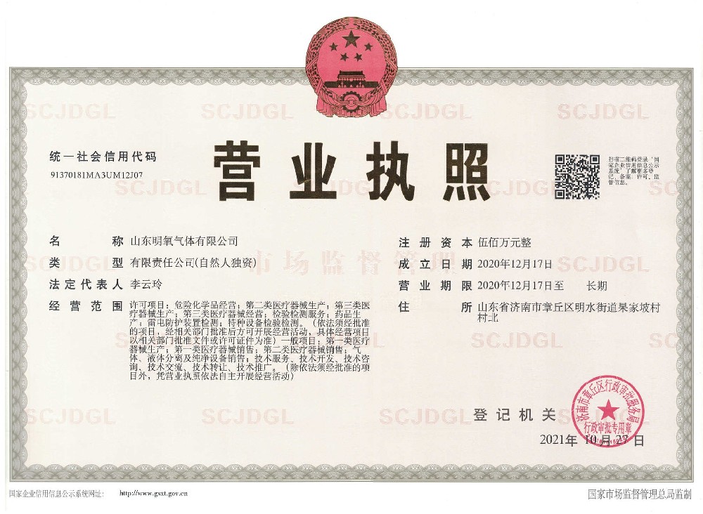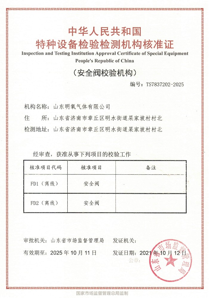 ??? 山東明氧氣體有限公司的前身為始建于1993年的章丘市明水氧氣廠,2020年12月企業由民營獨資轉型升級為山東明氧氣體有限公司,企業進入新的發(fā)展階段。公司位于山東省濟南市章丘區明水街道杲家坡村村北,占地面積4000平方米,注冊資金500萬元,固定資產投資3000萬元,主要經營項目為醫(yī)用氧氣、工業氧氣、氮氣、高純氮氣、氬氣、高純氬氣、高純氦氣、二氧化碳、混合氣體等各種工業氣體、高純氣體、混合氣體的充裝銷售、各類氣瓶的銷售、安全閥校驗、鋼質無縫氣瓶的檢驗等。