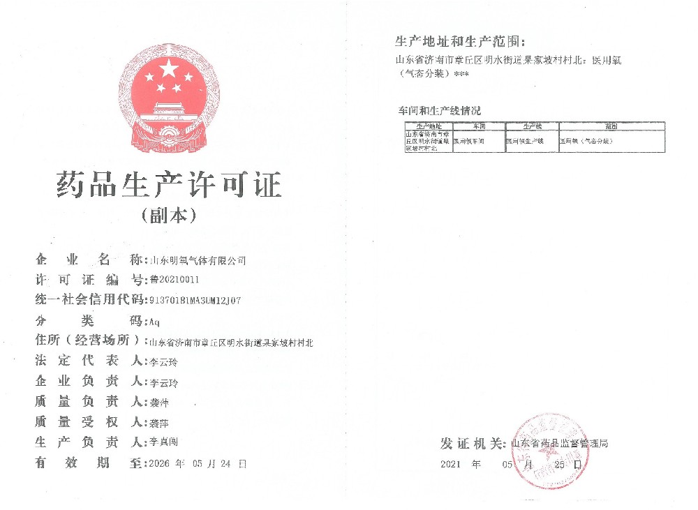 2022年12月取得國家藥品監(jiān)督管理局頒的藥品注冊證書,醫(yī)用氧項目正式投入生產